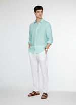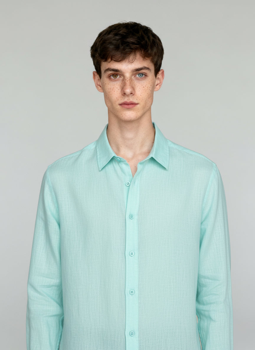 The aqua blue shade looks incredibly fresh and premium. The linen quality is excellent, and the fit feels perfect. Truly a great buy.