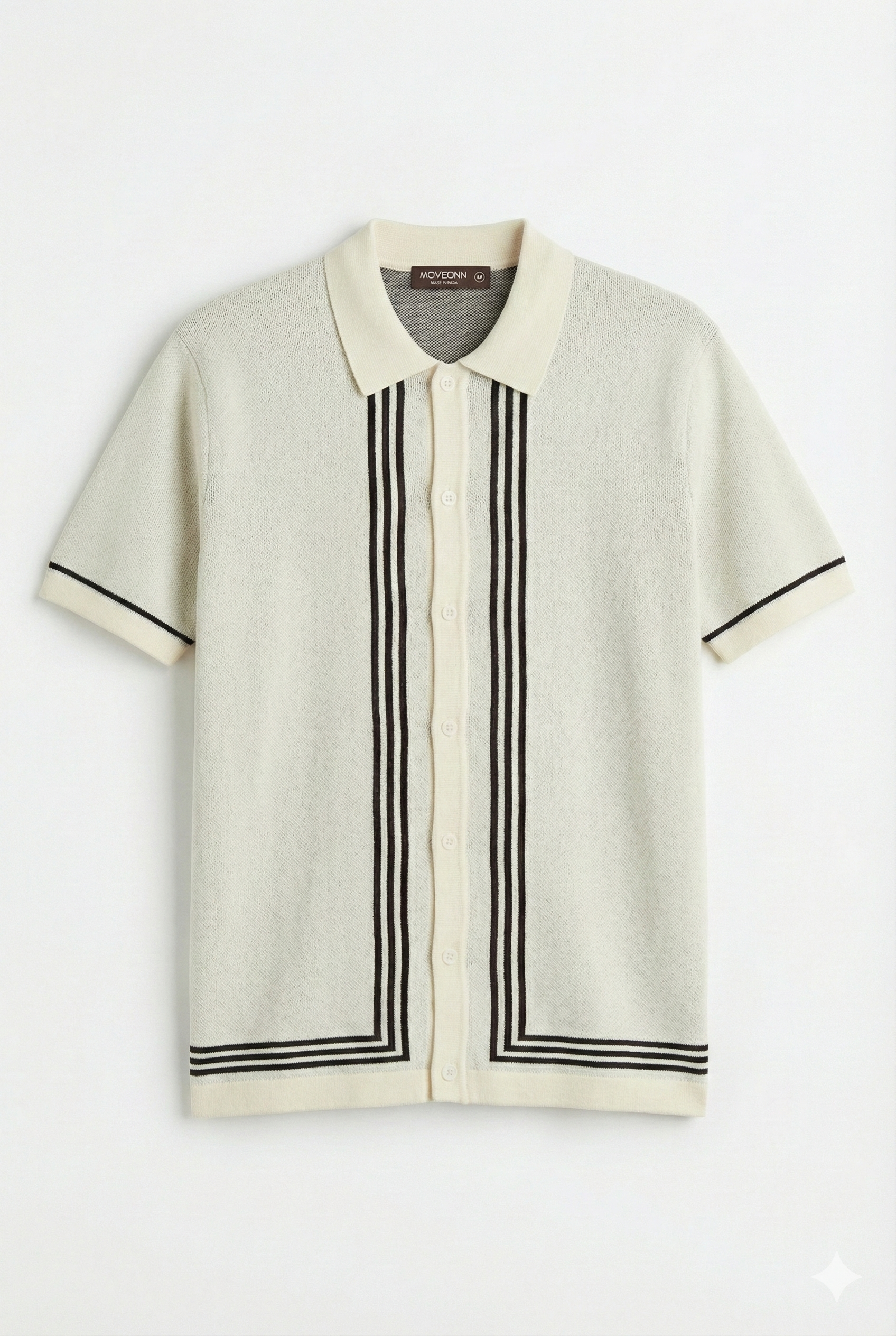 Refined yet relaxed, the Cream Brown Knit Shirt from Moveonn’s Knitwear Collection and Knitted Shirts Collection offers an elevated take on retro resortwear. Designed in a soft cream base with subtle dark brown panel detailing, this slim-fit knitted shirt blends vintage flair with modern structure—perfect for dressed-up casual looks or weekend getaways.
