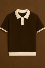 Elevate your everyday style with the Retro Knit Polo – Coffee Beige from Moveonn’s Knitwear Collection and Knitted Polo Collection. This slim-fit half-zip polo blends vintage athletic aesthetics with a refined modern silhouette. Featuring a rich dark brown body with contrasting cream collar and cuffs, it's ideal for day-to-night wear with elevated comfort.