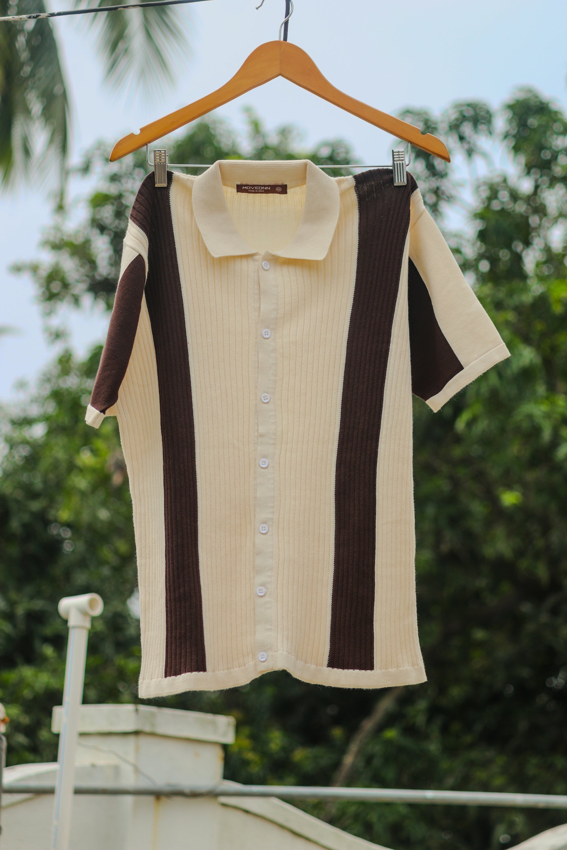 Step into elevated everyday style with the Retro Two tone Knit Shirt from Moveonn’s Knitwear Collection and Knitted Shirts Collection. Designed with bold cream and dark brown vertical panels and a rib-knit texture, this slim-fit shirt offers both comfort and structure. A refined retro-inspired piece that transitions perfectly from laid-back afternoons to stylish evenings.